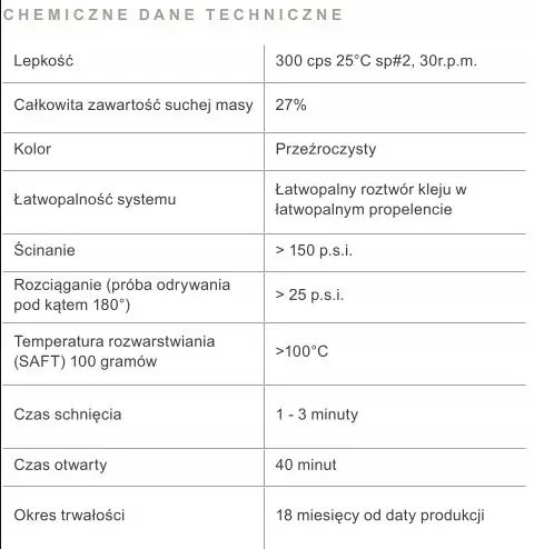 to natryskowy klej kontaktowy przeznaczony dla przemysłu meblarskiego i klejenia różnorodnych materiałów do arkuszy płyt drewnopochodnych, metalu i niektórych twardych tworzyw sztucznych. Jego kleistość i właściwości PSA czynią go idealnym również do pianek, tkanin, materiałów włóknistych oraz wielu innych porowatych i nieporowatych substratów.