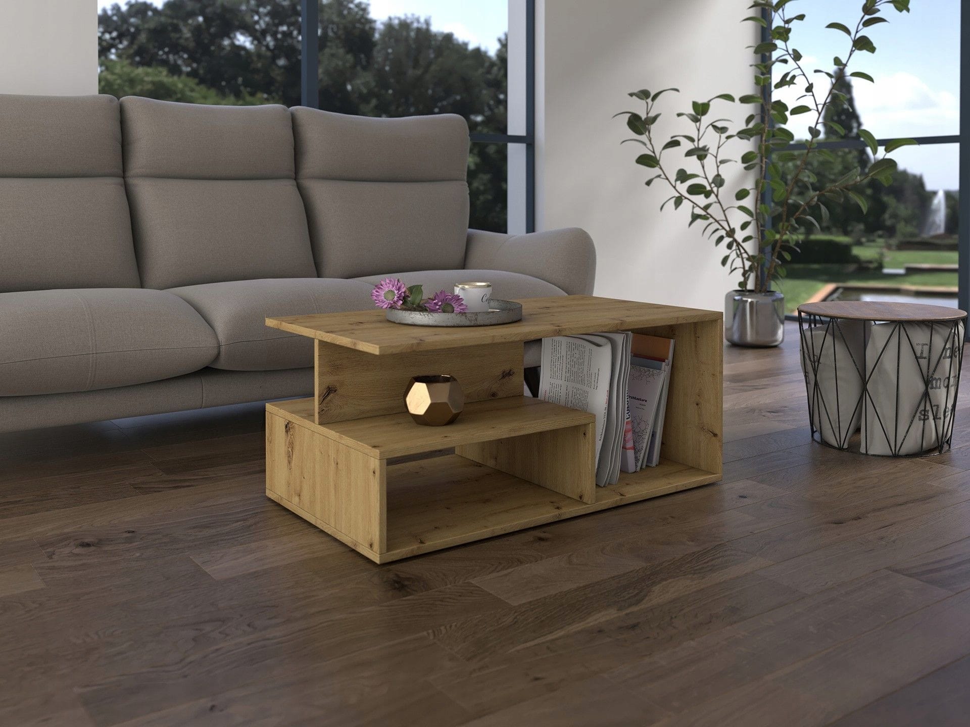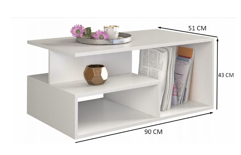 Ława kawowa wykonana z solidnej płyty laminowanej wraz z dodatkową półką na przedmioty codziennego użytku. Świetnie nadaje się do nowoczesnych salonów, mniejszych pokoi, czy eleganckich biur.