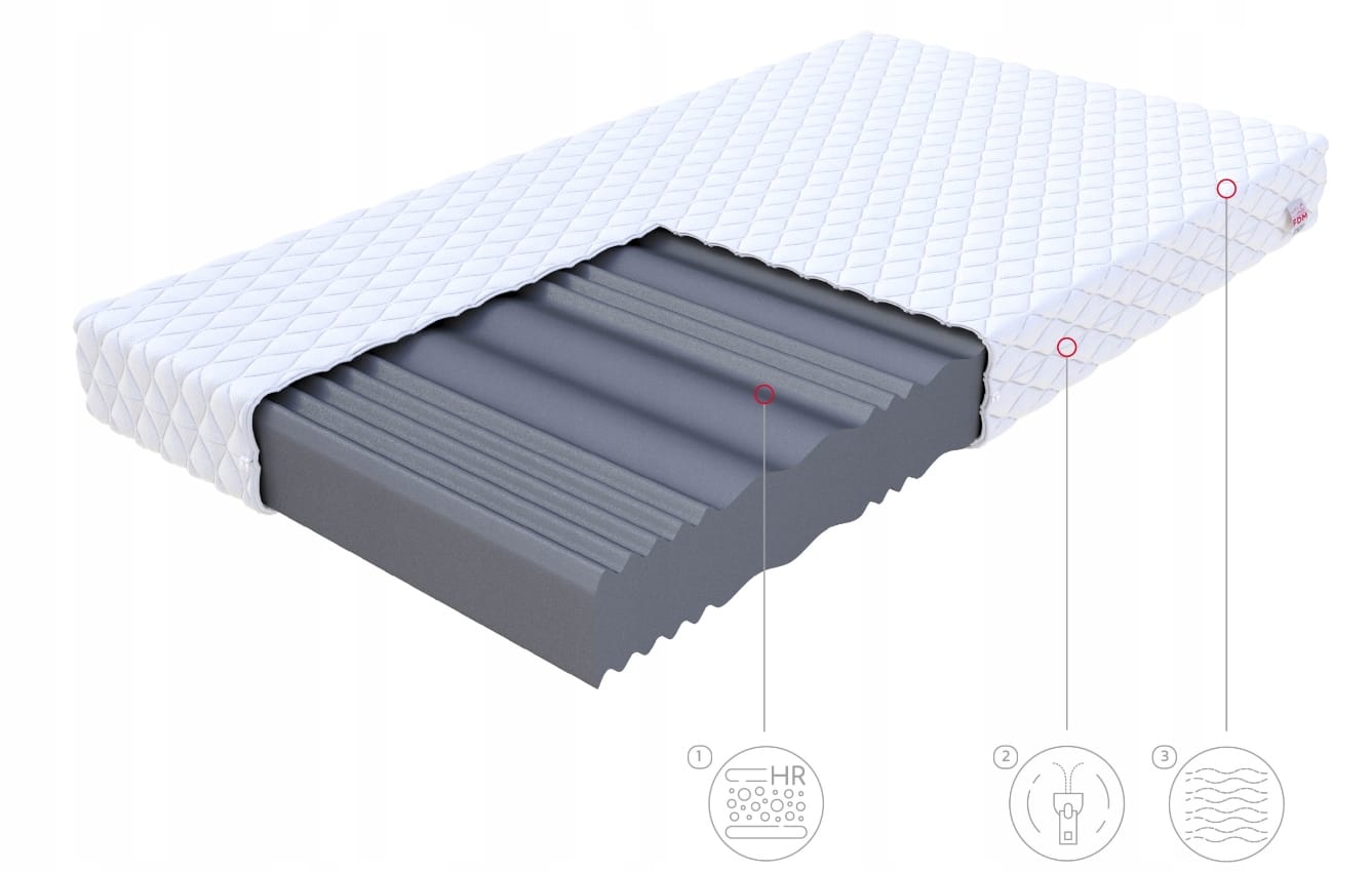 - Został stworzony z niezwykle trwałej, wysokoelastycznej pianki HR.