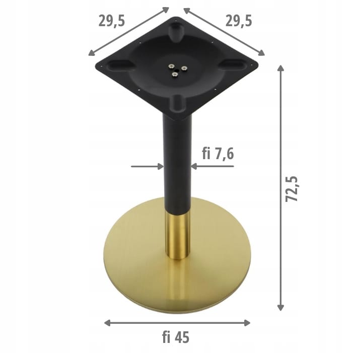 - noga o średnicy 76 mm wykonana ze stali nierdzewnej w kolorze złotym połączonej ze stalą w kolorze czarnym, grubość ścianki 1,2 mm
